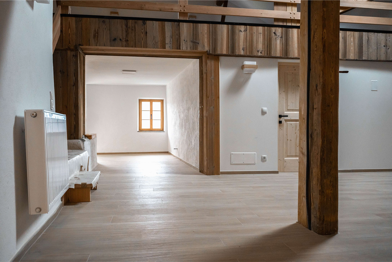 Die Bäder des Hotels wurden mit hochwertigen Fliesen ausgestattet, die Eleganz und Pflegeleichtigkeit vereinen. In den Schlafzimmern kam ein moderner Vinylboden (Designboden) zum Einsatz. Dieser Bodenbelag ist nicht nur strapazierfähig und pflegeleicht, sondern bietet auch eine angenehme Haptik und trägt maßgeblich zur gemütlichen Atmosphäre bei.